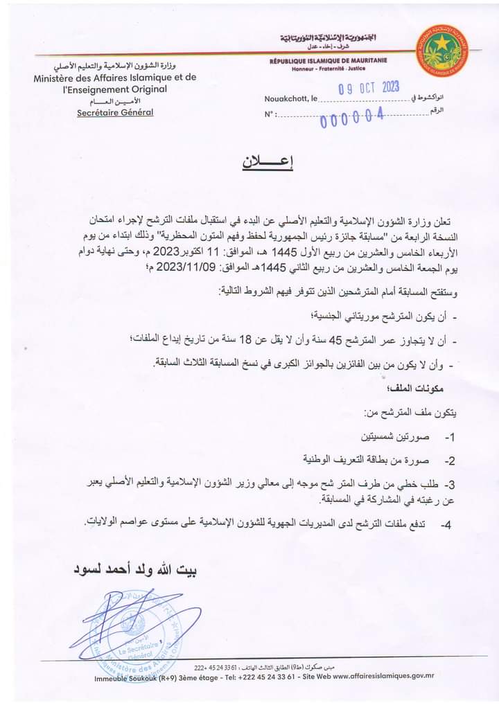 أشرف الأمين العام لوزارة الداخلية واللامركزية محمد محفوظ إبراهيم أحمد اليوم الاثنين في مقاطعة دار النعيم بولاية نواكشوط الشمالية على تدشين أول مركز للإنقاذ المدني وتسيير الأزمات في مقاطعة دار النعيم.