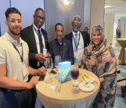 Moi-même venant de Tokyo (Japon), Soultana Hadein venant de Nouakchott (Mauritanie), photo ici avec Son Excellence M. Alvin Tan, Ministre d’État de Singapour pour le Commerce et l’Industrie, et le Développement national, Président de l’ASBF 2025, Ahmed Mbaye nous rejoignant depuis New_York ville (États-Unis), et Mohamed Lemine Mbeirick nous rejoignant venant de Helsinki (Finlande).