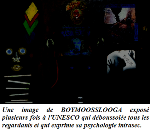 Une image de BOYMOOSSLOOGA exposé plusieurs fois à l'UNESCO qui déboussolée tous les regardants et qui exprime sa psychologie intrasec.