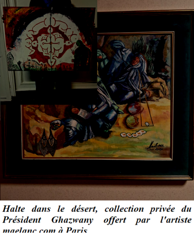 Halte dans le désert, collection privée du Président Ghazwany offert par l'artiste maelanc.com à Paris.