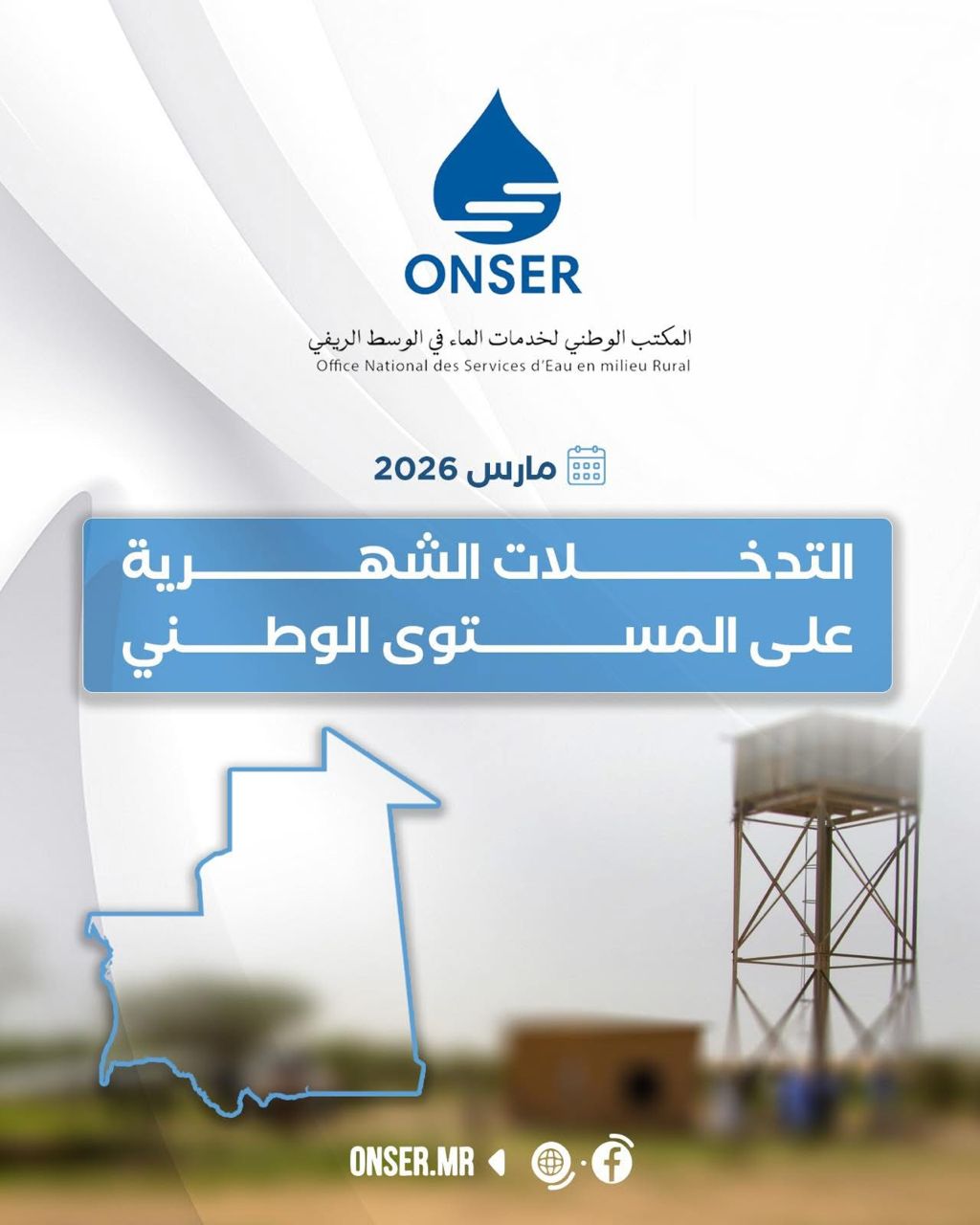 المكتب الوطني لخدمات الماء في الوسط الريفي : التدخلات الشهرية على المستوى الوطني – مارس 2026