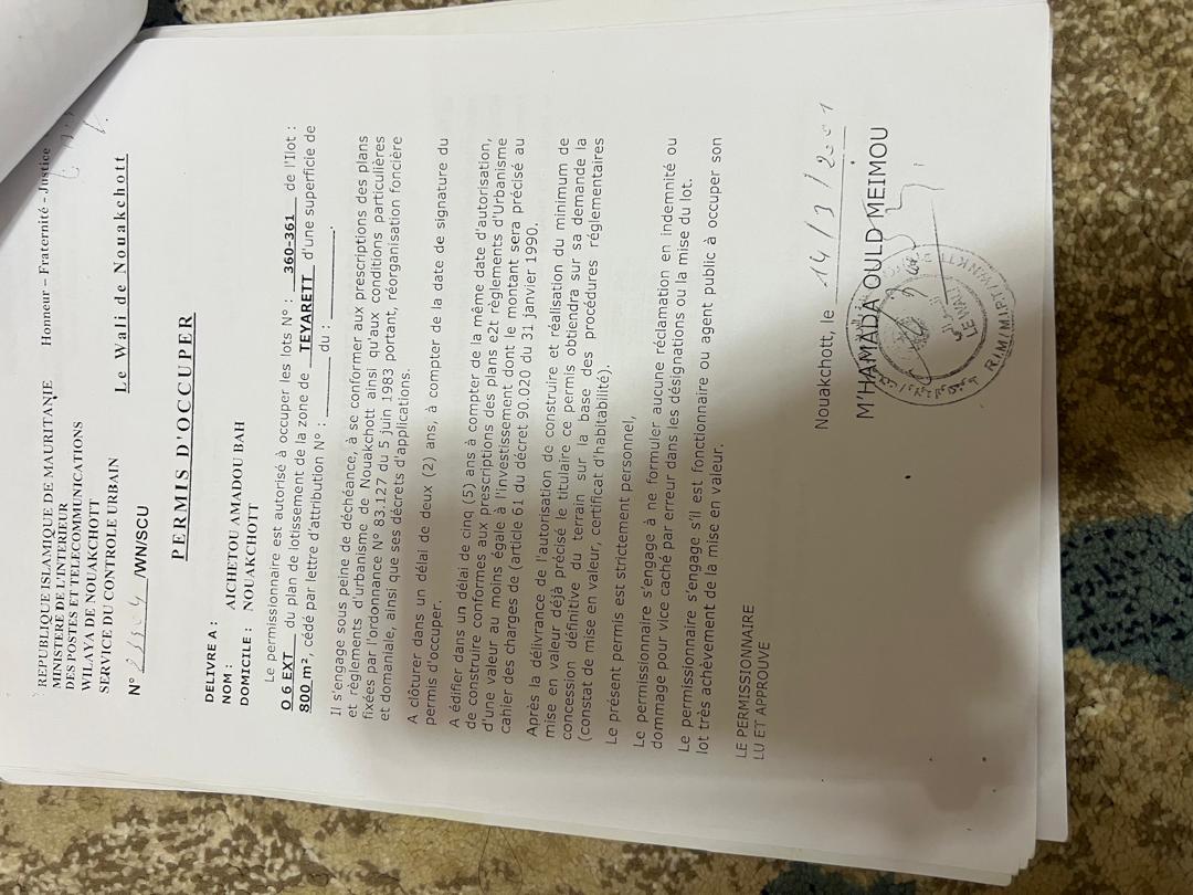 بعد هذه الوقائع البشعة في حقنا والتي تعرضنا لها بقينا ثابتين وحيث أننا قد تركنا مامن شانه إثارة الجدل والتظاهر حتى فتحت لنا الوزارة شبابيك لتصحيح الوضعية وسجلنا لديها ونحن على استعداد تام لدفع المبالغ الحددة لكل قطعة حسب الوثيقة الصادرة عن وزارة العقارات وكان ذالك في فترة المختار ولد بوسيف