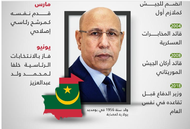 وكان الغزواني قد أدى في فاتح أغسطس 2019 اليمين الدستورية رئيسا لموريتانيا خلفا لسلفه ولد عبد العزيز، بعد فوزه في انتخابات رئاسية جرت أواخر شهر يونيو 2019، شهدت منافسة ستة مرشحين للمعارضة.
