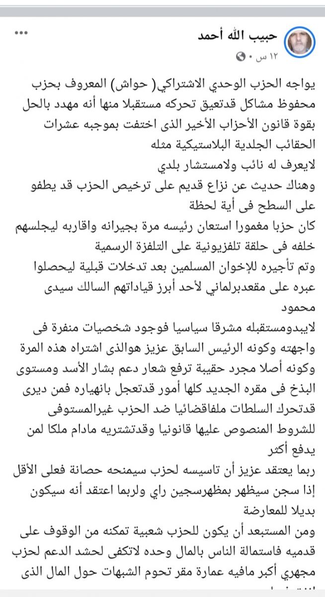 وهناك حديث عن نزاع قديم على ترخيص الحزب قد يطفو على السطح فى أية لحظة