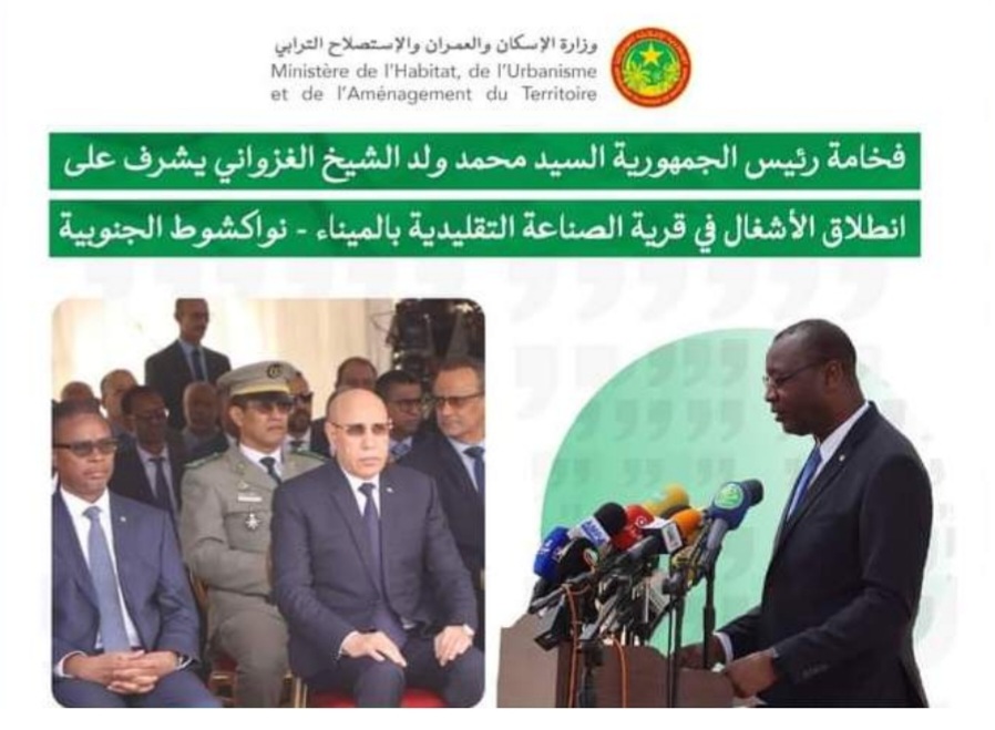 وفي مناسبة أخرى من مناسبات البناء والتعمير جاء إشراف فخامة رئيس الجمهورية: محمد ولد الشيخ الغزواني على وضع حجر الأساس لمشروع بناء "قرية الصناعة التقليدية" المشيدة من طرف وزارة الإسكان والعمران والاستصلاح الترابي، كتأكيد على اهتمامه بالخصوصية الثقافية للبلاد وللمكونات الاجتماعية الوطنية. إلى جانب تحقيق هدف السياسة العمرانية، حيث يعمل قطاع الإسكان والعمران وفقا للتوجيهات السامية والطموح الكبير لصاحب الفخامة على عدة مشاريع كبرى، منها على سبيل المثال لا الحصر، بناء خمسة أبراج في مدينة انواكشوط لإيواء عدة قطاعات وزارية. كما يعكف على التفاوض لبناء 2000 وحدة سكنية اقتصادية.