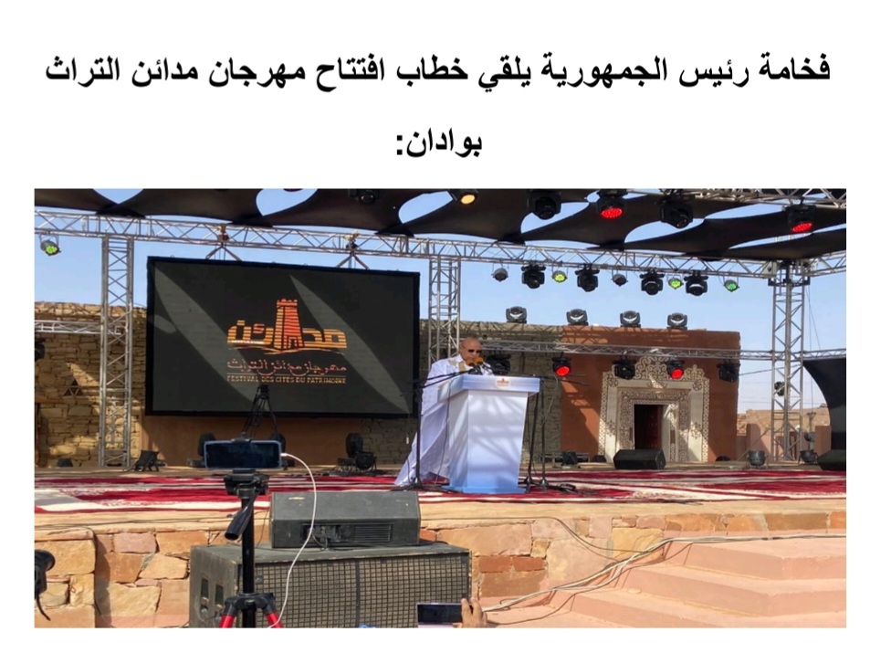 فخامة رئيس الجمهورية يلقي خطاب افتتاح مهرجان مدائن التراث بوادان: