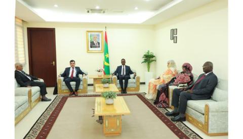 التقى الوزير الأول محمد ولد بلال مسعود، اليوم الأربعاء بمكتبه بالوزارة الأولى آرزكي مزهود، الأمين العام للمنظمة النقابية الإفريقية الذي يزور بلادنا حاليا.