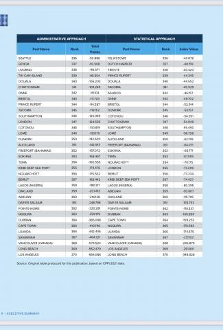 وجاء ميناءا الدار البيضاء وأكادير في المرتبتين 261 و262، وبعدهما ميناء بجاية الجزائري في المرتبة 285، ثم ميناء الجزائر المرتبة 306 عالمياً.