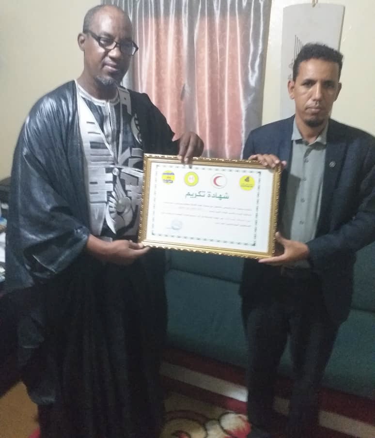 وقد سلم السيد سليمان عباس، ممثل الهيئات المذكورة ، التكريم ، للسيد، عزيز ولد الصوفي، نائب نقيب الصحفيين .