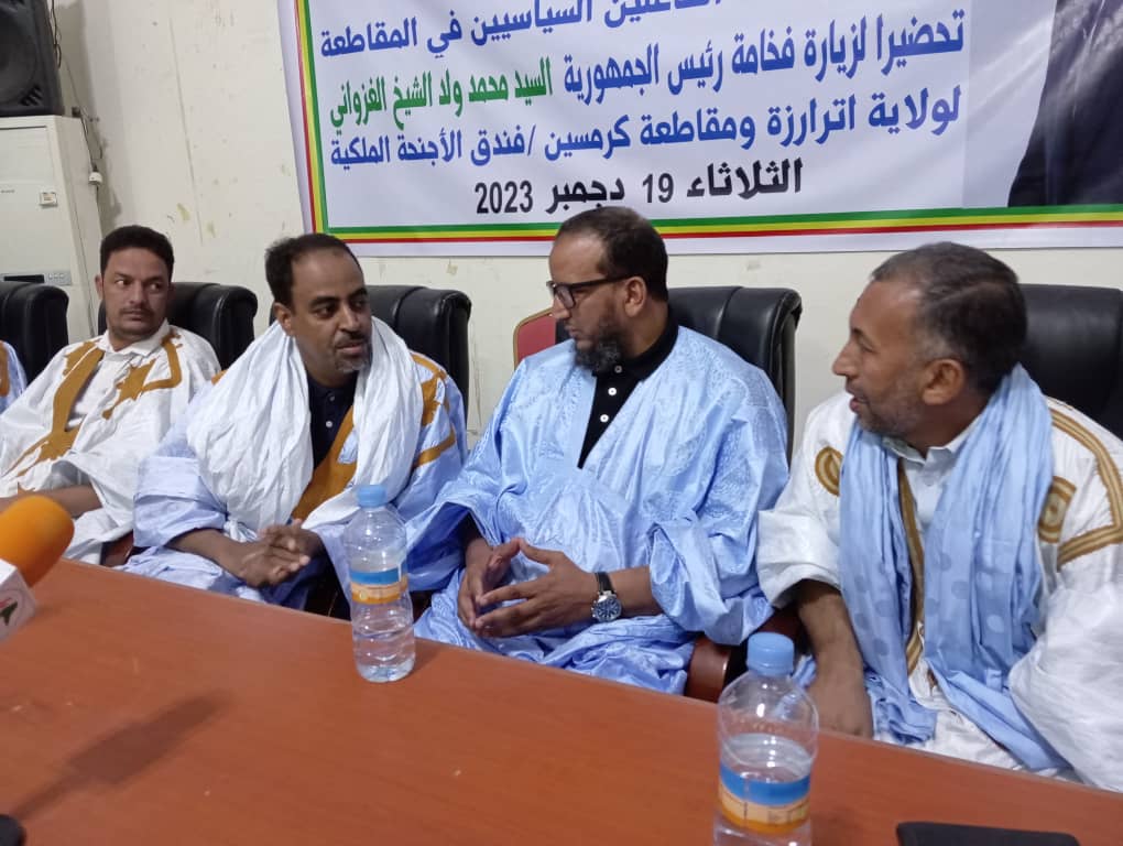 الدكتور ولد عبدي في كلمته الترحيبية قال إن الهدف من الدعوة والاجتماع بالمنتخبين والأطر والوجهاء هو التحضير الجيد لإنجاح الزيارة.
