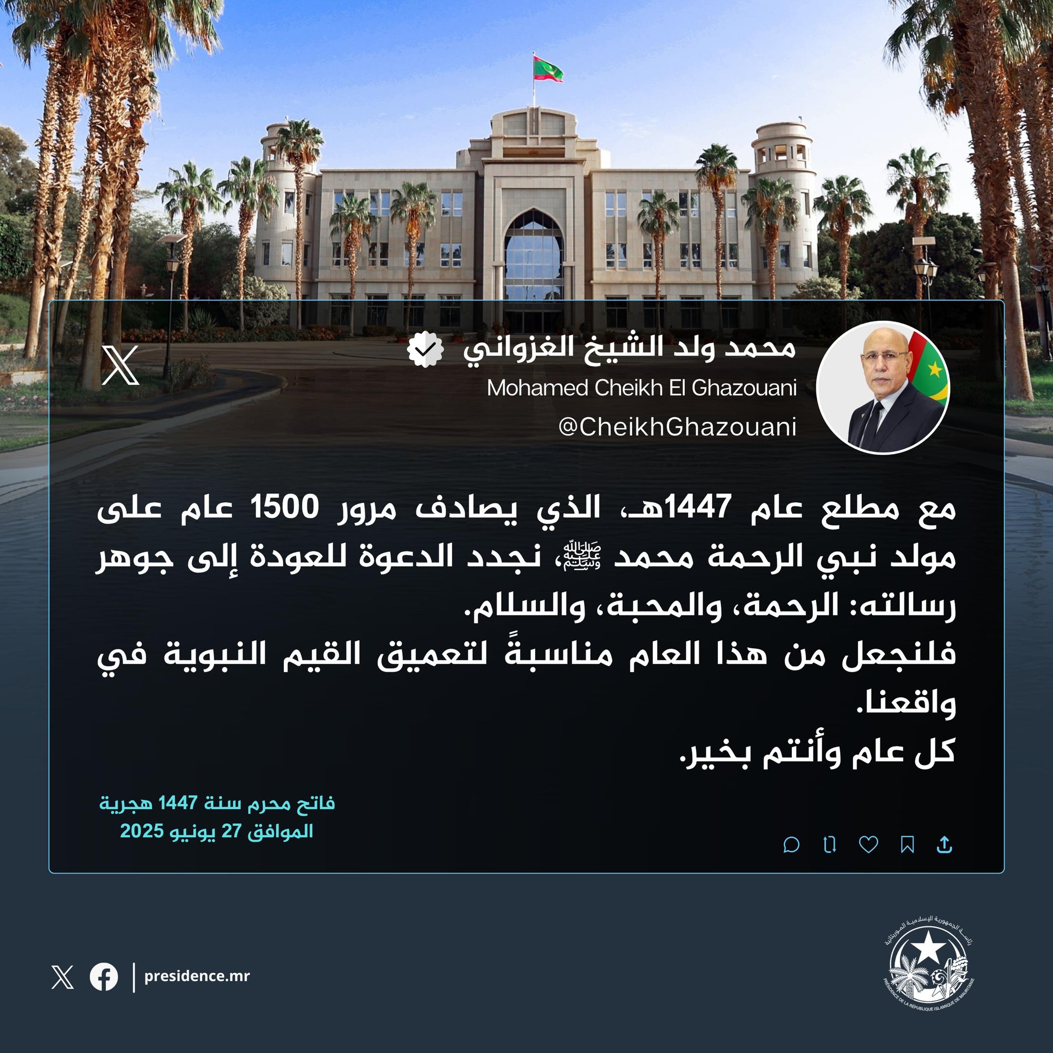الرئيس الغزواني يهنئ الأمة الإسلامية بمناسبة العام الهجري الجديد