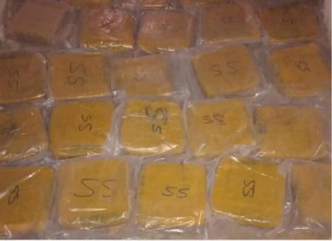 وقد تم توقيف المشتبه به متلبسا بحيازة كمية المخدرات البالغة 27 كلغ موزعة على 30 صفيحة.