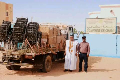 تسلم عمدة الشامي محمد ولد عبد القادر هبة مقدمة من طرف شركة كينروس تازيازت لصالح البلدية الهدية ، عبارة عن مستلزمات طبية لصالح المركز الصحي المقاطعي. #_بلدية_الشامي