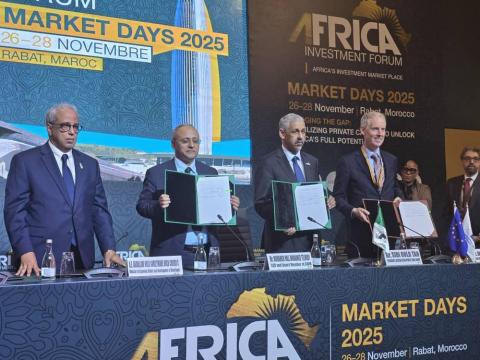 على هامش منتدى الاستثمار الأفريقي 2025، أشرف وزير الشؤون الاقتصادية والتنمية، السيد عبد الله سليمان الشيخ سيديا، بعد ظهر اليوم على توقيع اتفاقية تمويل بين البنك الأفريقي للتنمية (AfDB) والبنك الأوروبي للاستثمار (EIB Global) والشركة الوطنية للصناعة والمناجم (سنيم).