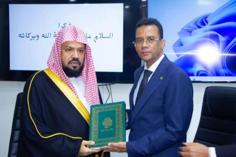 وقد رحب معالي الوزير الفضيل ولدسيداتي ولد أحمد لولي في كلمته الترحبية بالضيف الكريم مبرزا مكانة المدينة المنورة والمسجد النبوي الشريف وأئمة الحرمين لدى لمويتانيين، متسعرضا بعضا من أوجه التعاون بين البلدين الشقيقين تحت قيادة قائدي البلدين فخامة رئيس الجمهورية السيد محمد ولد الشيخ الغزواني وخادم الحرمين الشريفين الملك سلمان بن عبد العزيز.