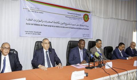 أطلق معالي وزير العدل، السيد محمد ولد سويدات، اليوم الخميس بنواكشوط، ورشة عمل مخصصة للمصادقة على مسودة مشروع قانون مكافحة المخدرات والمؤثرات العقلية، وذلك في إطار الجهود الوطنية الرامية إلى تعزيز المنظومة التشريعية ومكافحة الجريمة المنظمة.