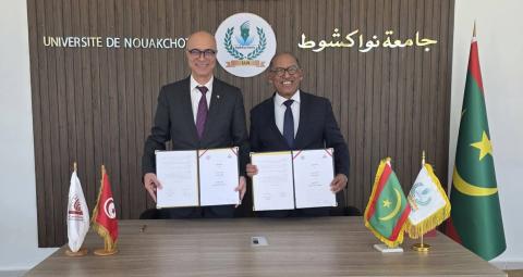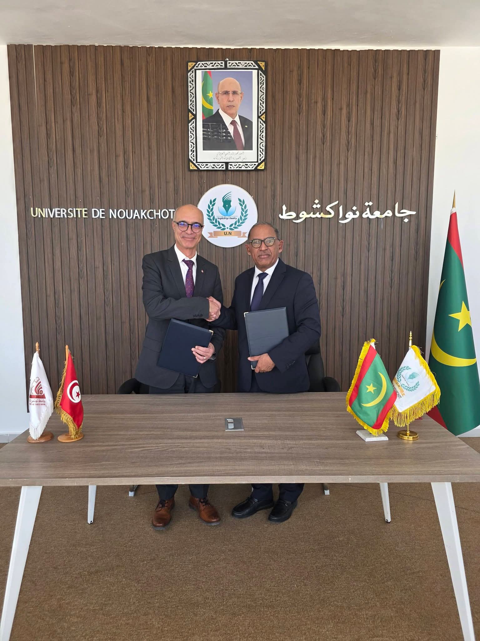 استقبل رئيس جامعة نواكشوط، البروفسور علي محمد سالم البخاري، يوم أمس الخميس، 29 يناير 2026 بمكتبه، الأستاذ الدكتور المعز الشفرة، رئيس جامعة تونس المنار، وذلك في مستهل زيارة عمل يؤديها للجامعة بهدف تعزيز روابط التعاون العلمي والأكاديمي بين المؤسستين.