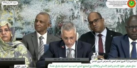 وأوضح معالي المفوض، في مداخلته، الجهود التي تبذلها موريتانيا لتعزيز وحماية حقوق الإنسان، مبرزًا ما تحقق من إصلاحات تشريعية ومؤسسية، إضافة إلى السياسات العمومية المتبعة في مجالات ترقية الحقوق والحريات، والعمل الإنساني، وتعزيز الشراكة مع المجتمع المدني.