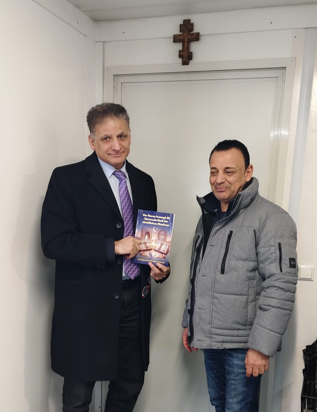 وفي هذا السياق، التقى العبيدي داخل أحد المكاتب النمساوية بأحد المسؤولين في قطاع الأعمال وهو الاستاذ الياس ، بعد تواصل مسبق لشرح مشروع الشرفاء الحمادي. وخلال اللقاء، قدّم له كتيّب الشرفاء المترجم إلى الألمانية "القرآن يشهد بصواب العقيدة المسيحية"، في مكتب تتجلى فيه الرموز الدينية المسيحية، وهو ما أضفى على اللقاء دلالة خاصة تعكس طبيعة الحوار بين المرجعيتين الإسلامية والمسيحية.