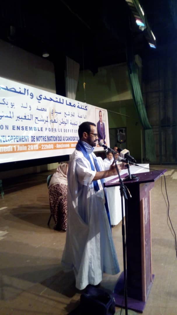 و شكر ممثل المرشح سيدي محمد ولد ببكر القائمين على الكتلة لتضحياتهم و عملهم النبيل، داعيا كافة أفراد الشعب الموريتاني إلى التصويت لمرشح التغيير المدني.