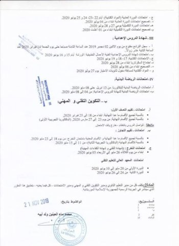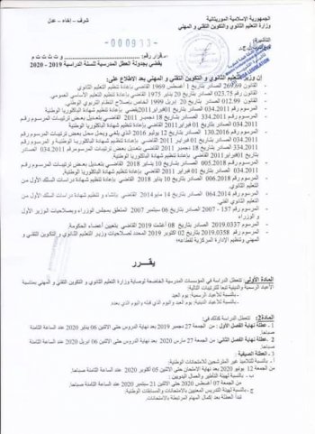 الوئام الوطني ـ أعلنت وزارة التعليم الثانوي والتكوين المهني الجمعه عن تاريخ العطل والإمتحانات الوطنية للعام الدراسي 2019-2020.
